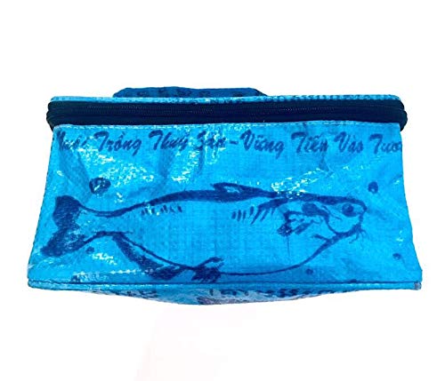 These bags are handmade in Cambodia from recycled cement and feed bags. In elephant, tiger, mermaid and fish design. Zippered top. 5” high, 10” long, 7” wide. If they’re sold out, these are almost the same thing.