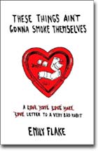 Even if cigarettes were illegal, Emily Flake wouldn’t care. She’s hard-core. She didn’t start out that way, of course, but once you’re hooked, you’re hooked. And, of course, she wants to stop. And can’t. So she goes through all the mental gymnastics that people go through when they are smarter than a chimp and yet toke deeply on cigarettes.